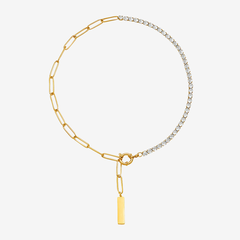 Diamonds Splicing Chain Asymmetric Pendant Necklace