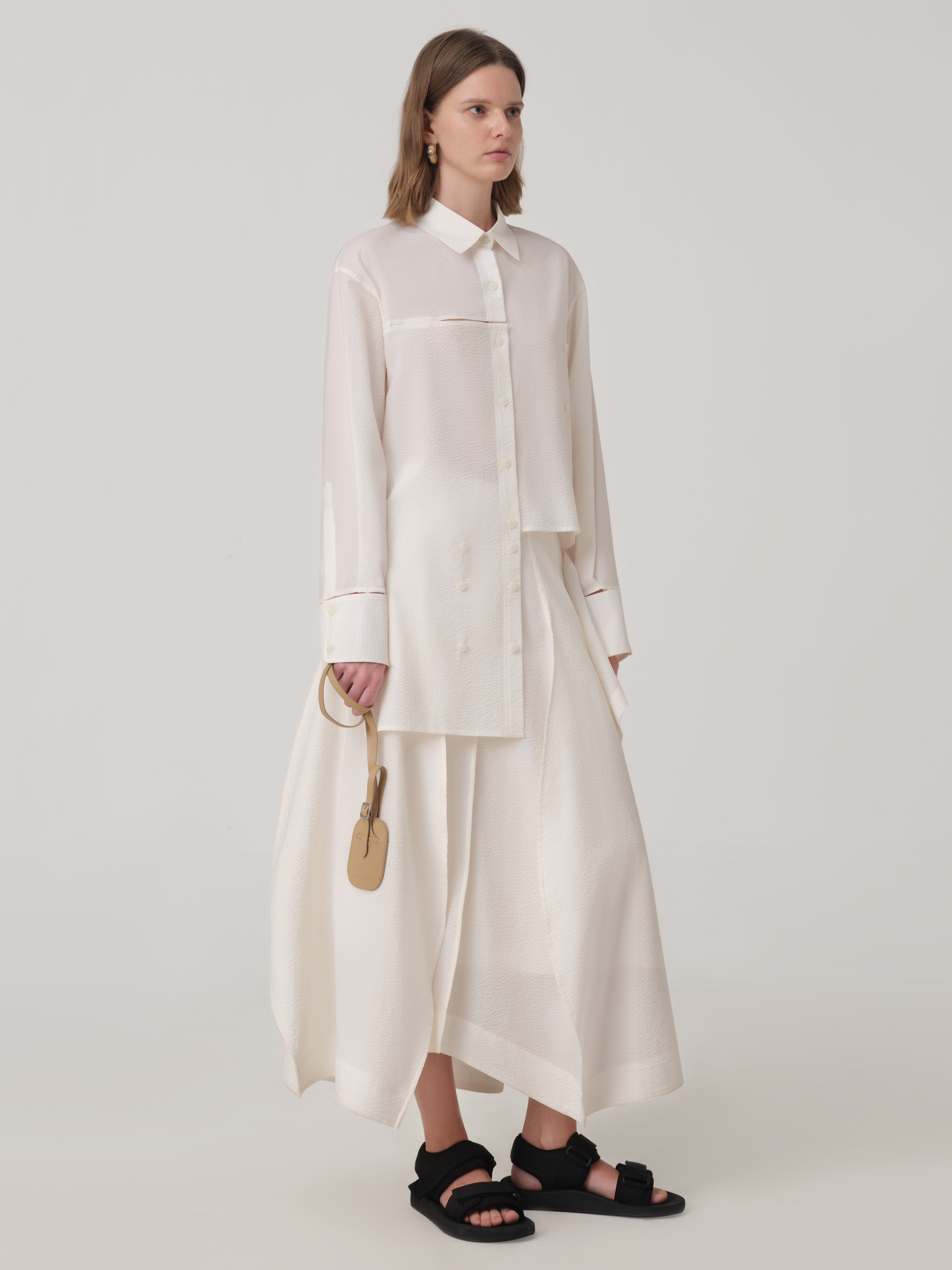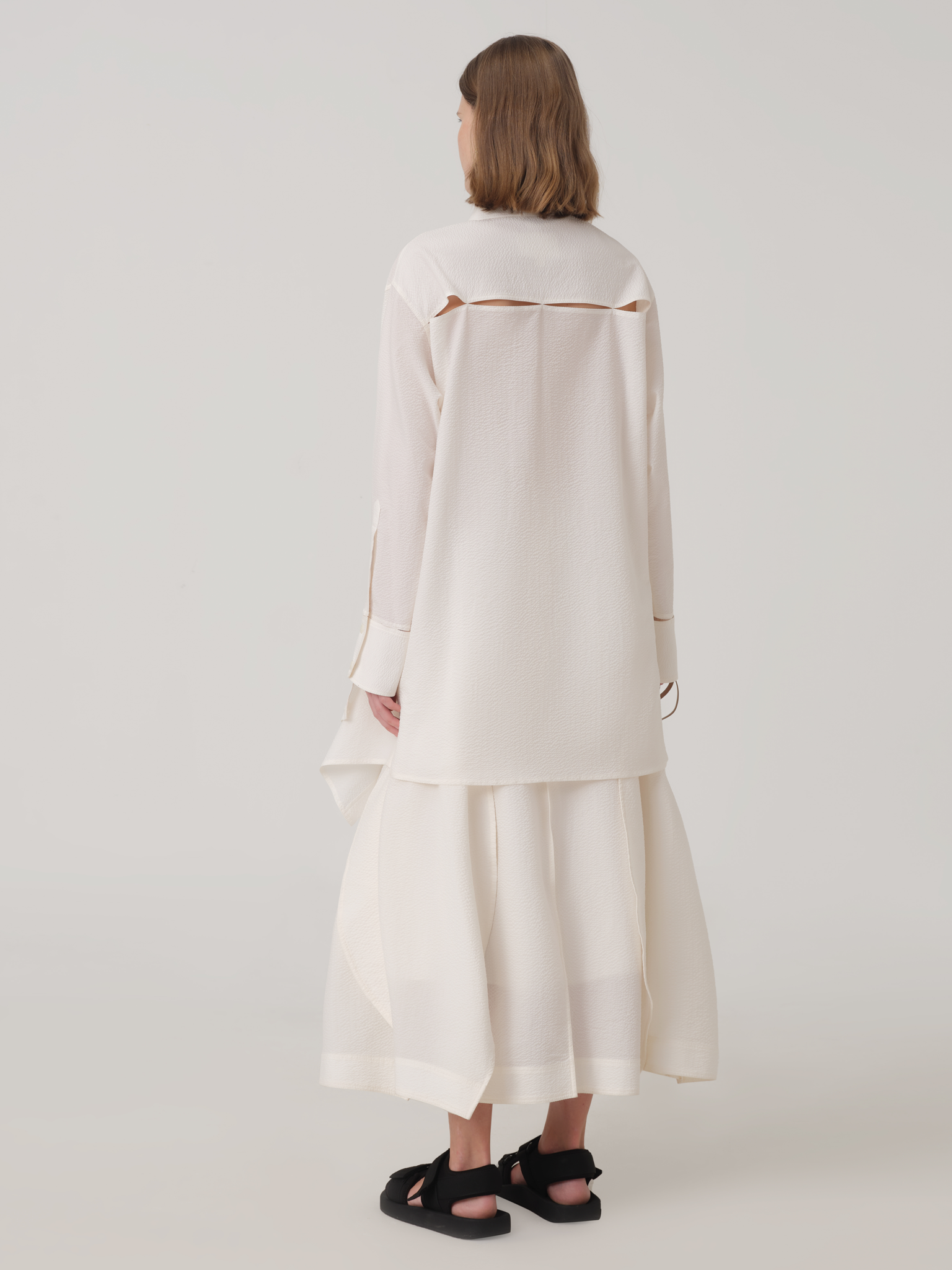 CUT-OUT LINEN MIDI SKIRT