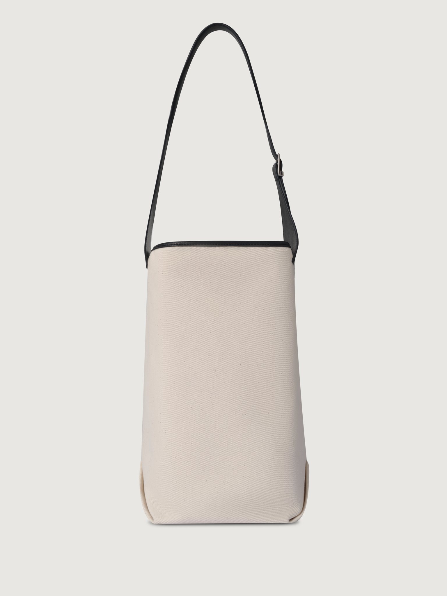 This design is made from canvas and reinforced with leather. The structured strap allows adjustability and the bucket silhouette offers a spacious interior for daily usage.