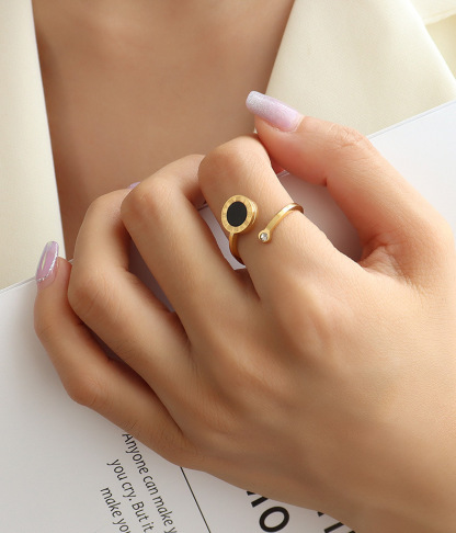 Diamond & Black Round Plate Ring