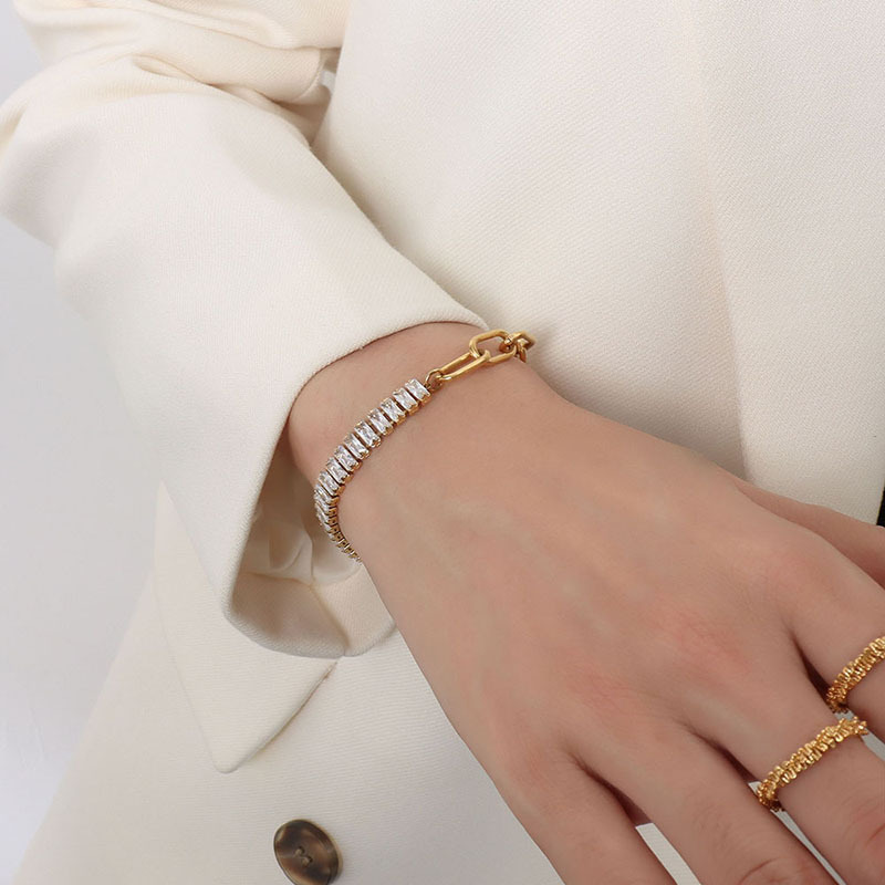 Diamonds Splicing OT Buckle Chain Necklace & Bracelet Set