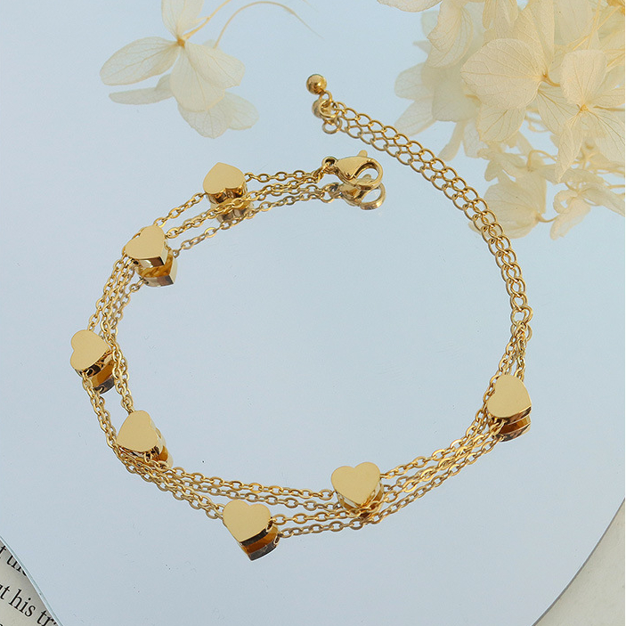 Double Layer Skinny Chain Splicing Hearts Bracelet