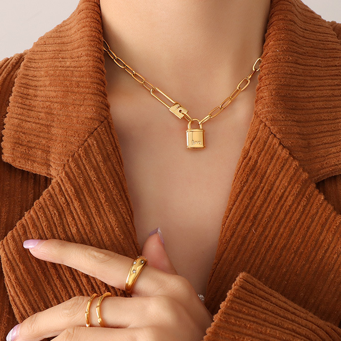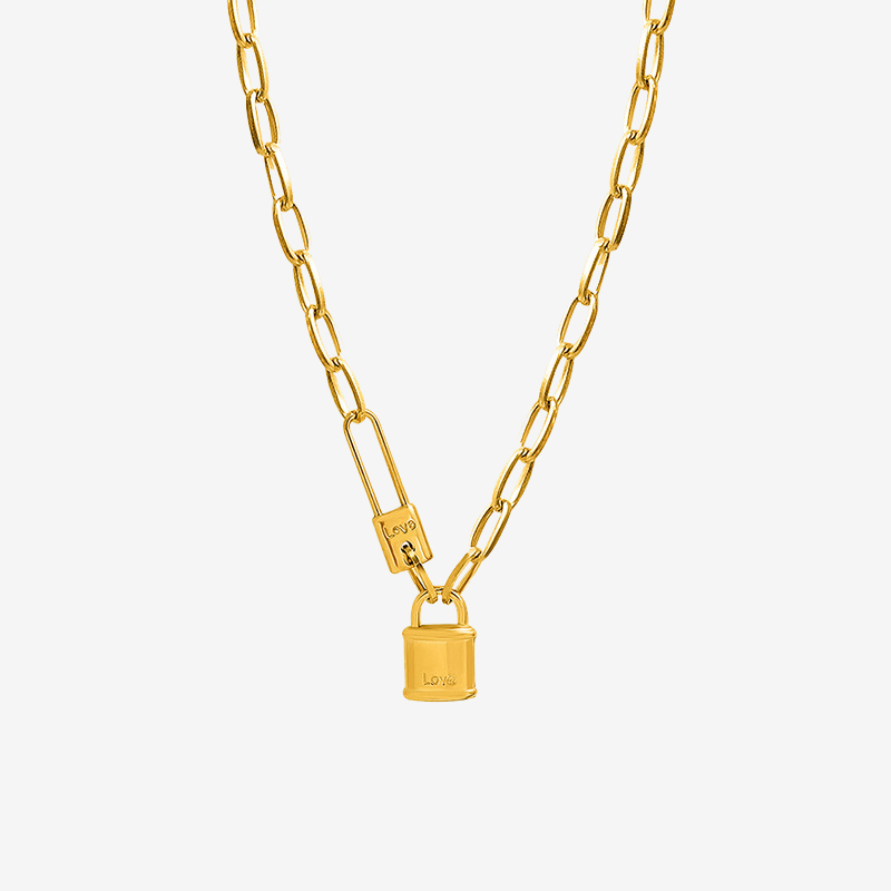 Love Lock Curb Chain Pendant Necklace