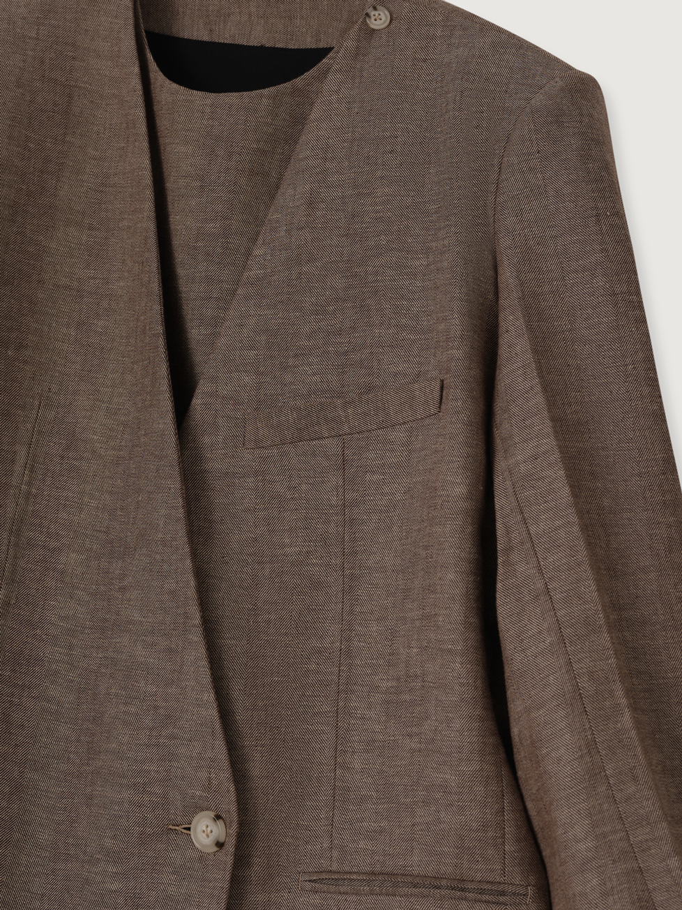 OVERSIZED SINGLE-BREASTED LINEN BLAZER IN MELANGE BROWN
