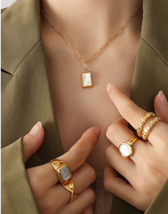 Square Shape White Seashell Pendant Chain Necklace