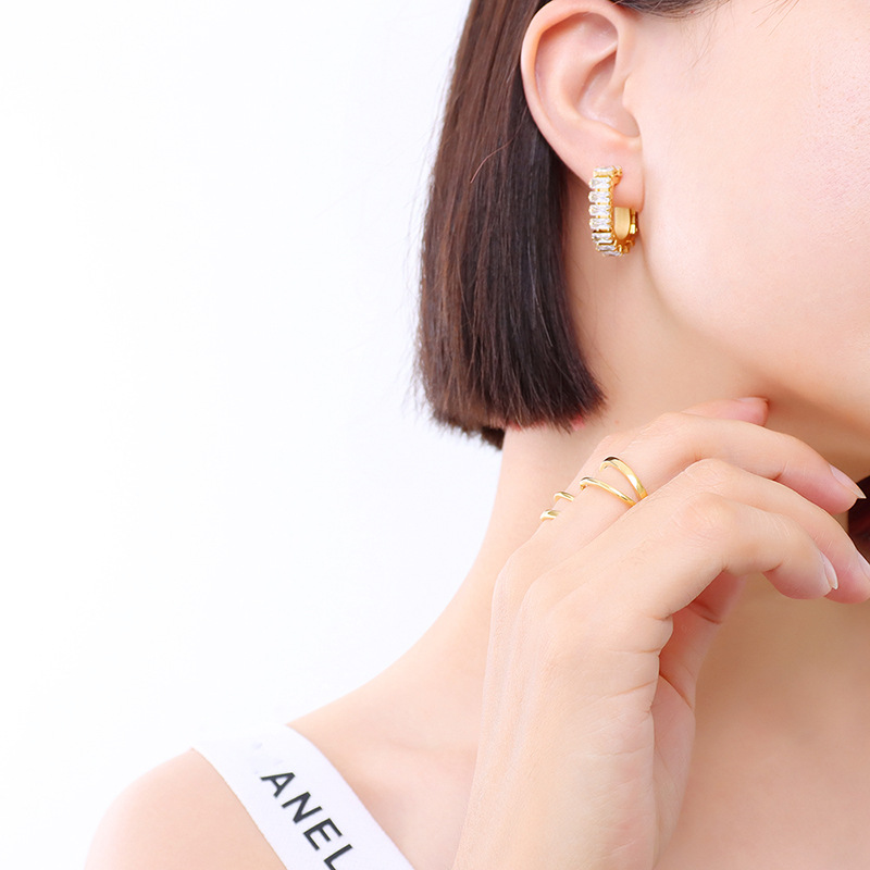 U Shape Diamonds Inlaid Hoops